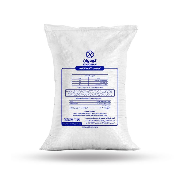 کود پتاسیمی ۳۰٪ گرانوله مقاومت گیاه را در برابر تنشهای محیطی افزایش داده و کیفیت محصول نهایی را بهبود میبخشد.